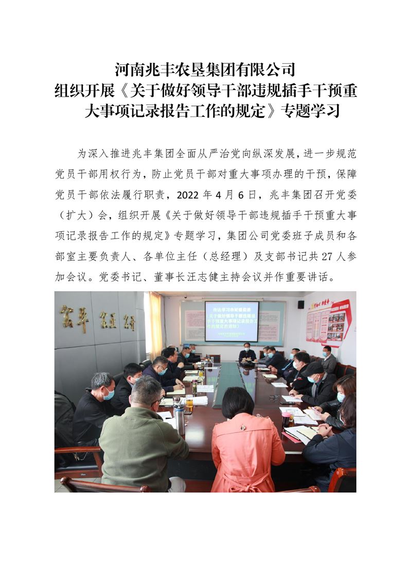 · 河南兆豐農(nóng)墾集團有限公司 組織開展《關(guān)于做好領(lǐng)導(dǎo)干部違規(guī)插手干預(yù)重大事項記錄報告工作的規(guī)定》專題學(xué)習(xí)