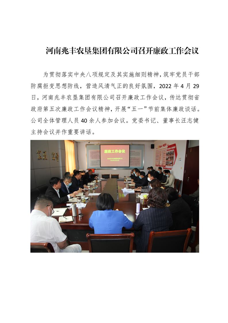 · 河南兆豐農(nóng)墾集團有限公司召開廉政工作會議