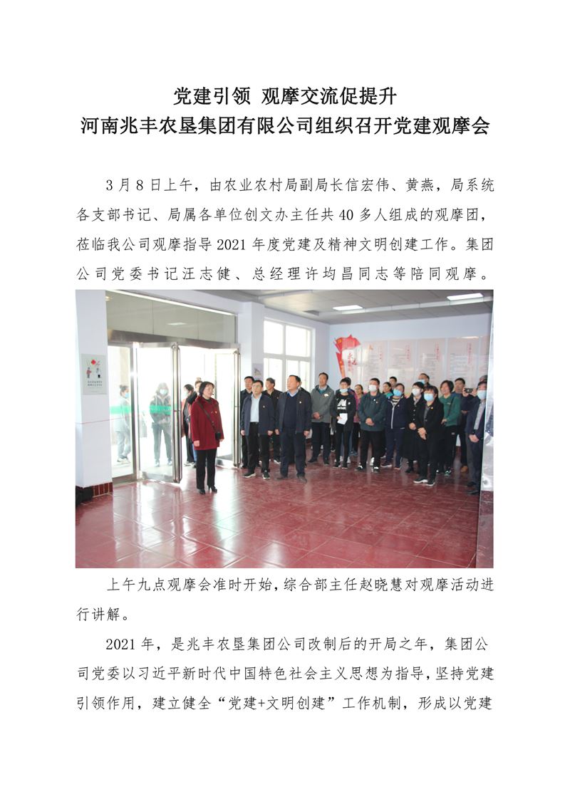 · 黨建引領(lǐng) 觀摩交流促提升 河南兆豐農(nóng)墾集團有限公司組織召開黨建觀摩會