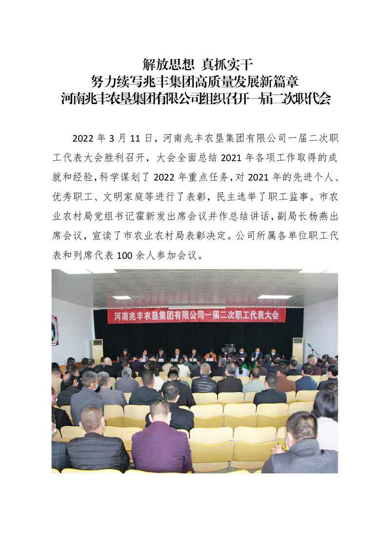 · 解放思想 真抓實干 努力續(xù)寫兆豐集團高質(zhì)量發(fā)展新篇章 河南兆豐農(nóng)墾集團有限公司組織召開一屆二次職代會