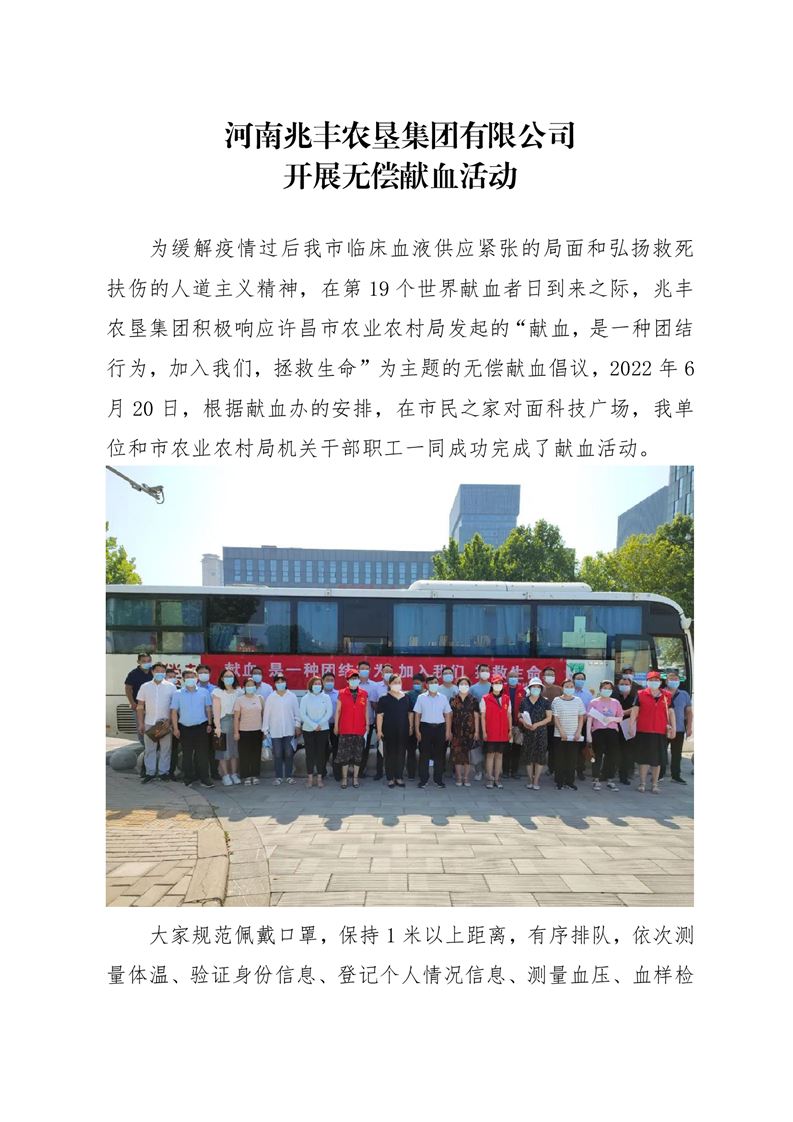 · 河南兆豐農(nóng)墾集團(tuán)有限公司 開展無償獻(xiàn)血活動(dòng)